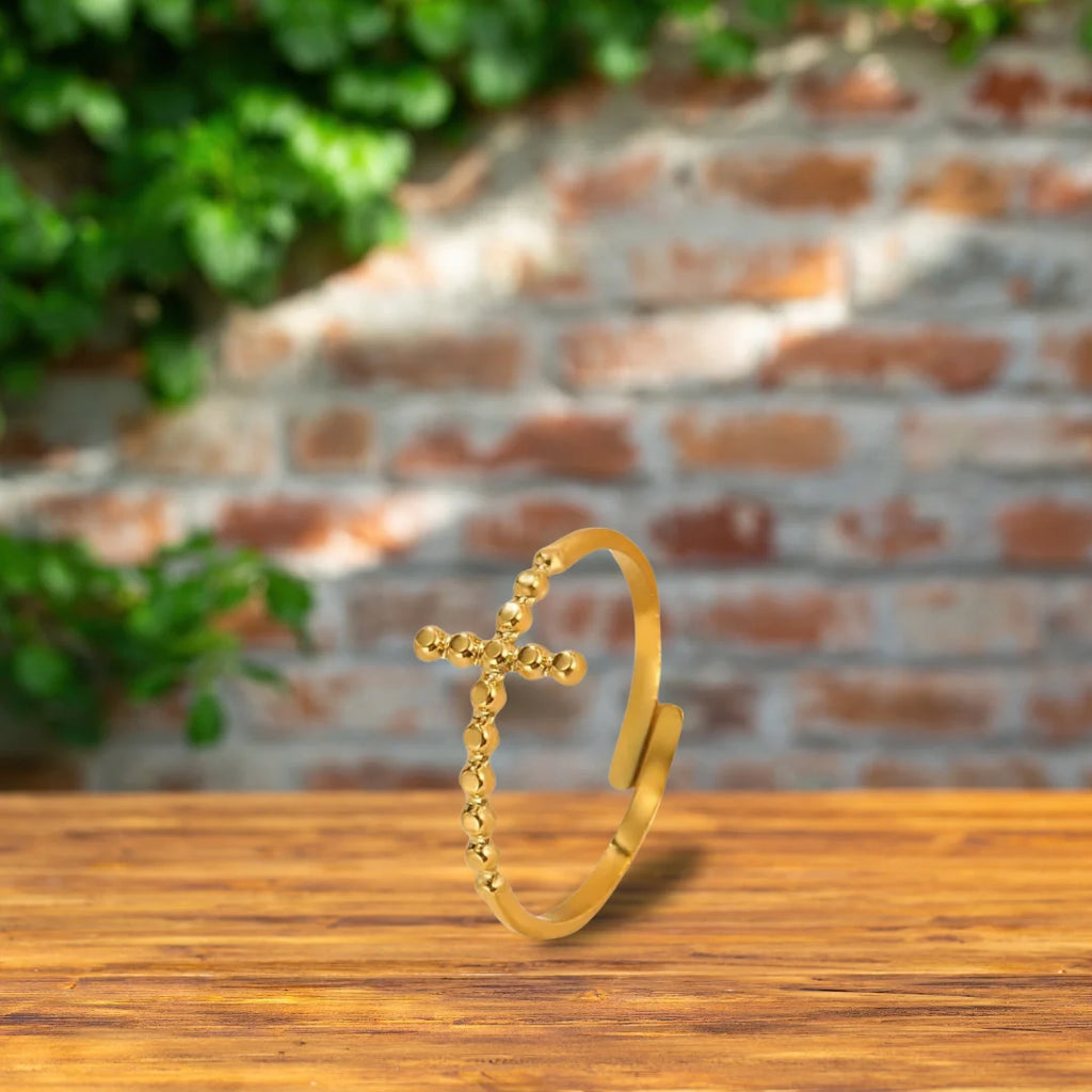 ✨ Anel Cruz Bendita – Ouro – Ajustável ✨
