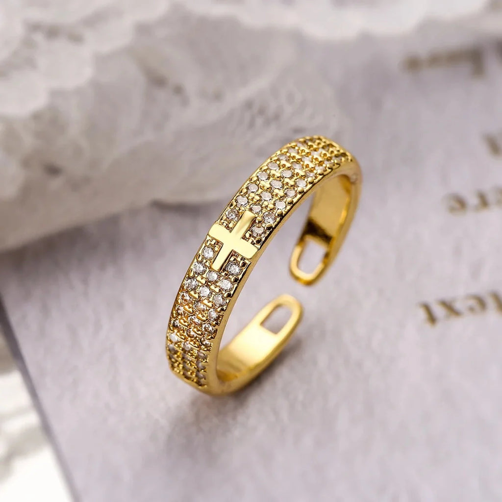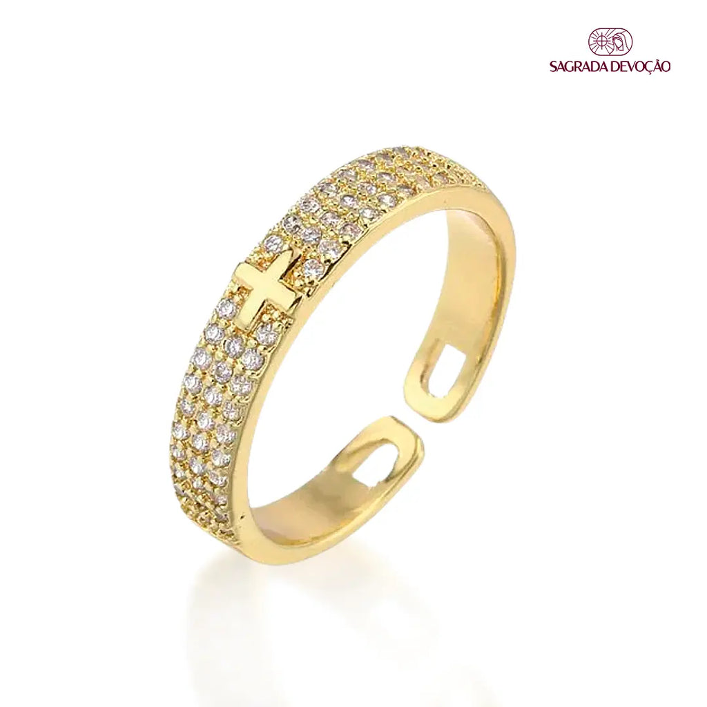 Com o design ajustável, ele garante o ajuste perfeito a qualquer dedo, oferecendo conforto durante o uso diário. Os cristais que cercam a cruz trazem um brilho radiante, tornando-o uma peça única e cheia de elegância.