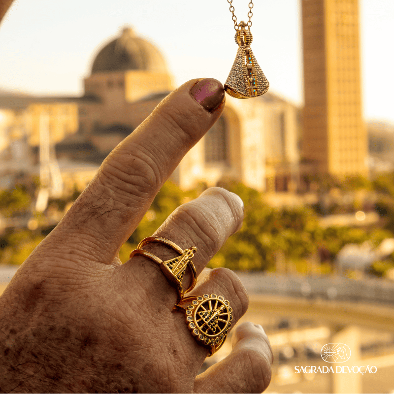 O Anel de Nossa Senhora Aparecida Protetora é uma joia feita exclusivamente em ouro, pensada para simbolizar a proteção divina e a presença acolhedora de Nossa Senhora Aparecida. Seu design ajustável garante que ele se adapte confortavelmente a diferentes tamanhos de dedo, tornando-o ideal para o uso diário.