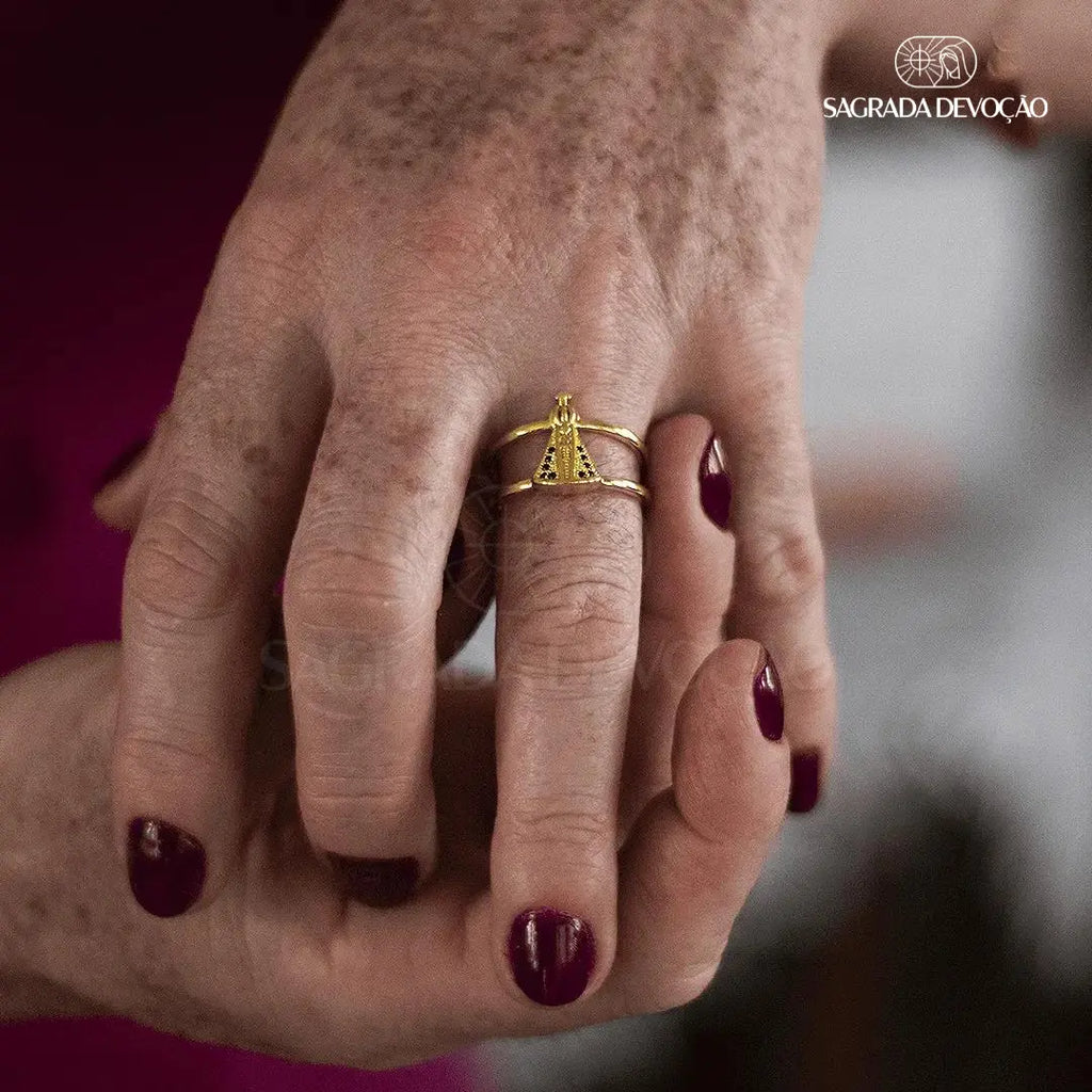 ✨ Anel de Nossa Senhora Aparecida Protetora – Ouro – Ajustável ✨