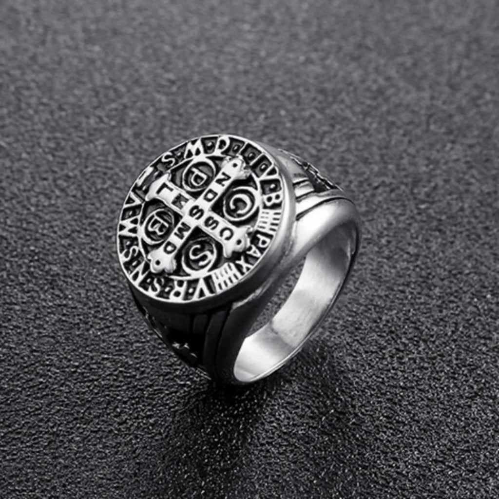 🌟 Carregue a proteção de São Bento com estilo e confiança. O Anel de São Bento Inoxidável