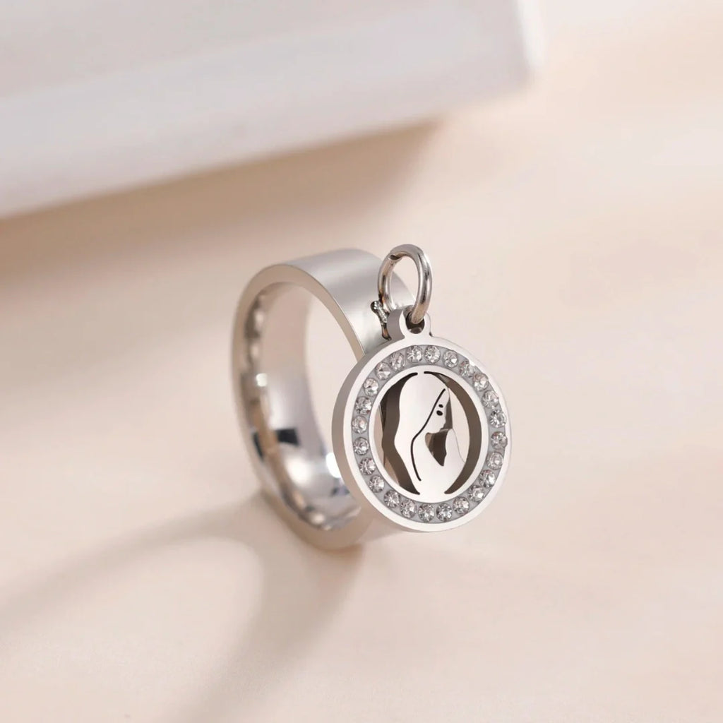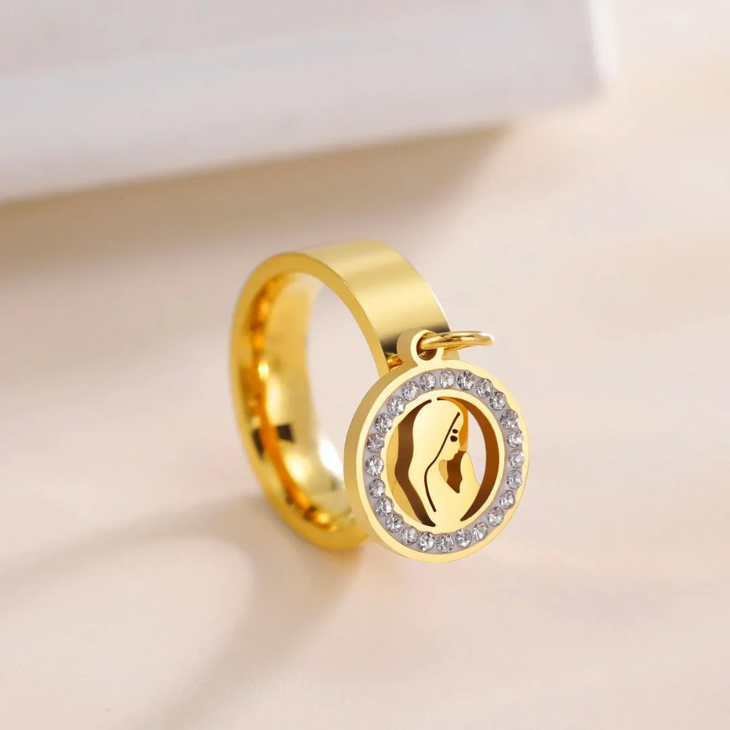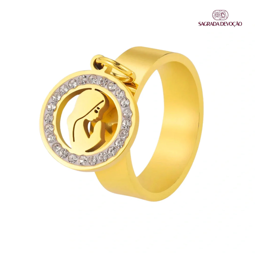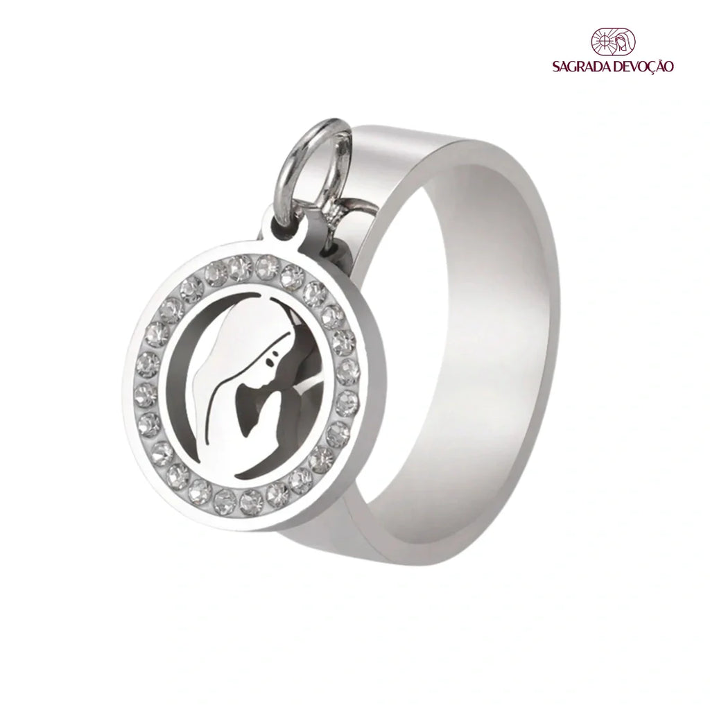 ✔ Medalha da Virgem Maria – A medalha pendurada é um detalhe especial que traz a imagem de Maria de Nazaré, conhecida por sua intercessão e proteção, tornando o anel ainda mais significativo.