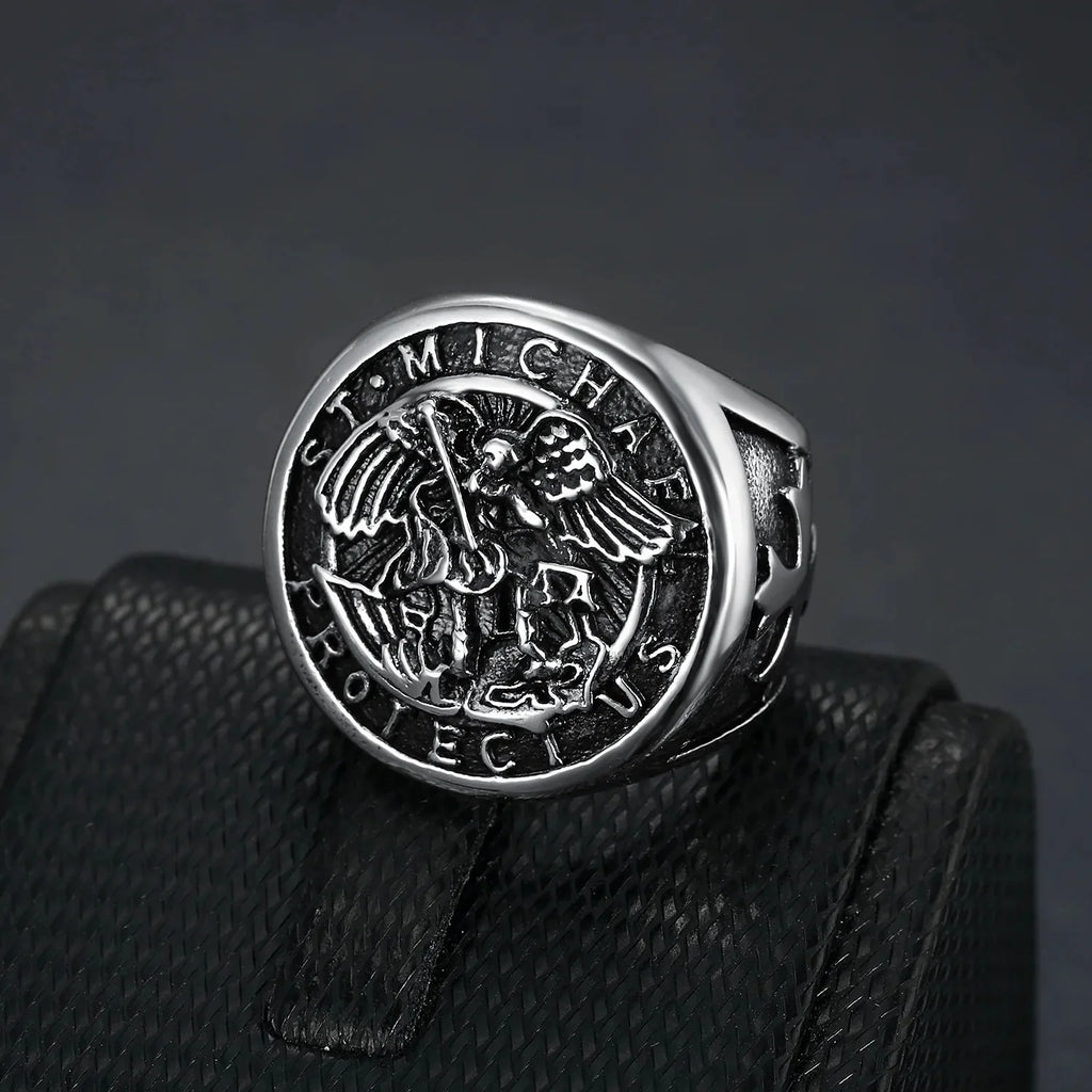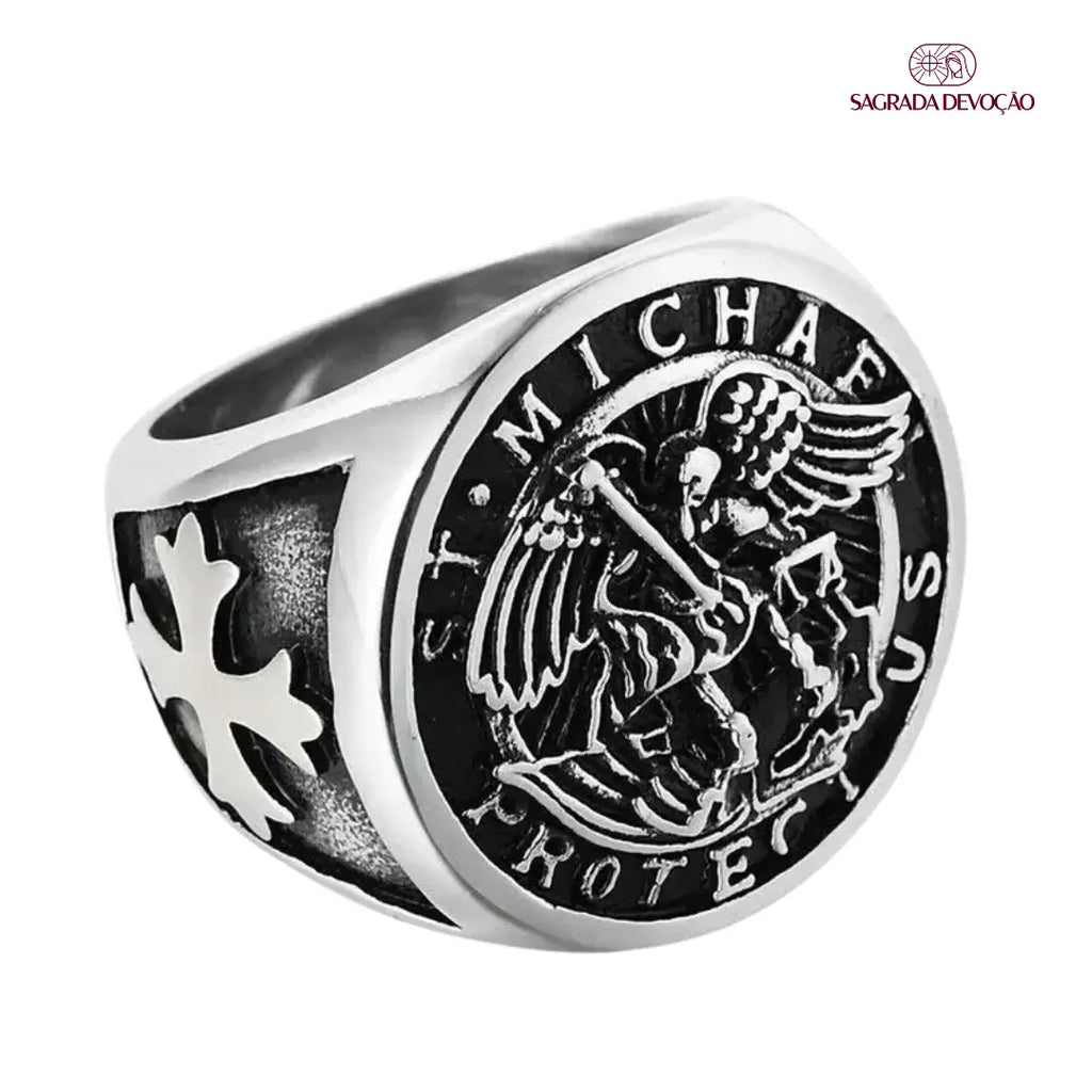 ✨ Anel São Miguel Arcanjo – Aço Inoxidável ✨
