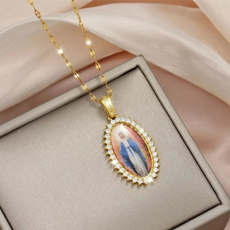 ✔ Imagem sagrada de Nossa Senhora das Graças – Símbolo de proteção e devoção, em uma joia exclusiva.
